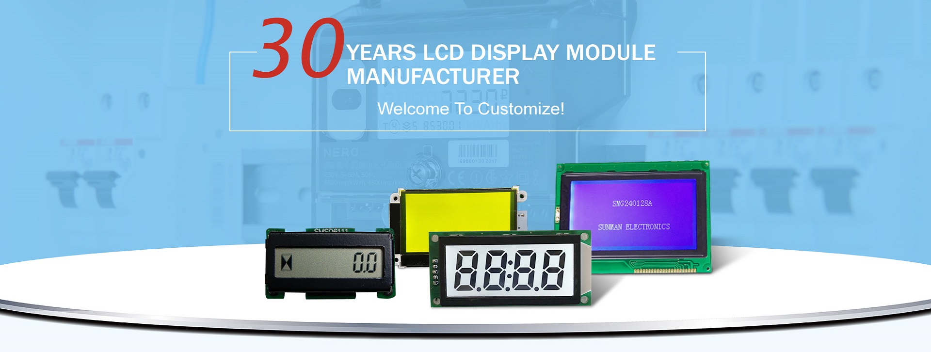 Sunman Electronics is a high-tech enterprise approved by Hunan Science and Technology Bureau, We specialized in research, designing,production,sale and service of lcd display for more than 30 years. we have our own independent industrial park.